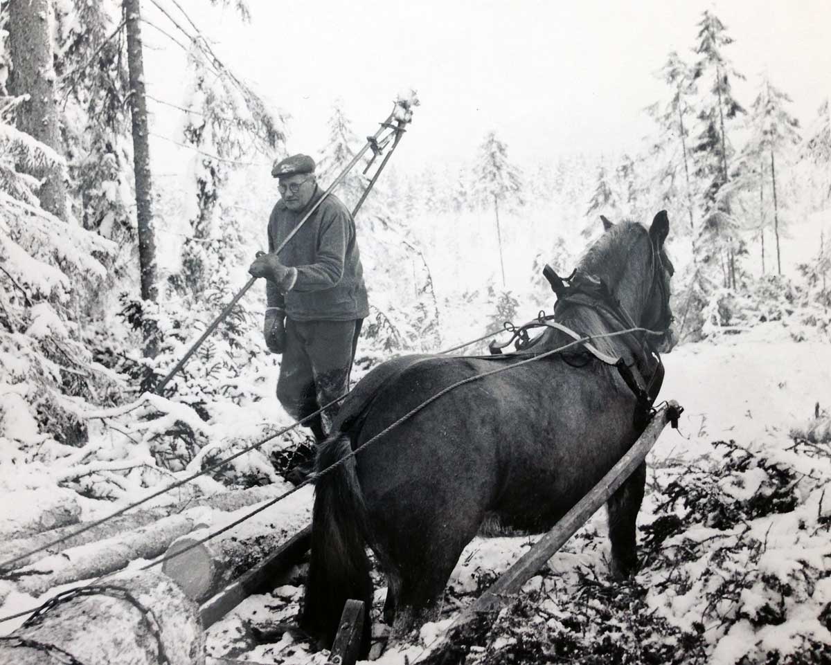 När jag var helt ung, troligen andra halvan av sextiotalet, fick jag hänga med farfar Björs-Jonas och farsan Jonas den yngre på en timmerkörning i skogen - någonstans mellan Järvsö och Nor. Det skedde då med häst och släde, på vintern. Farfars kära ”Fjälla” var en stor svart nordsvensk häst som var med honom i skogen om vintrarna. På somrarna hade hästar redan blivit utkonkurrerade av traktorerna, men i skogen var de fortfarande överlägsna maskiner!